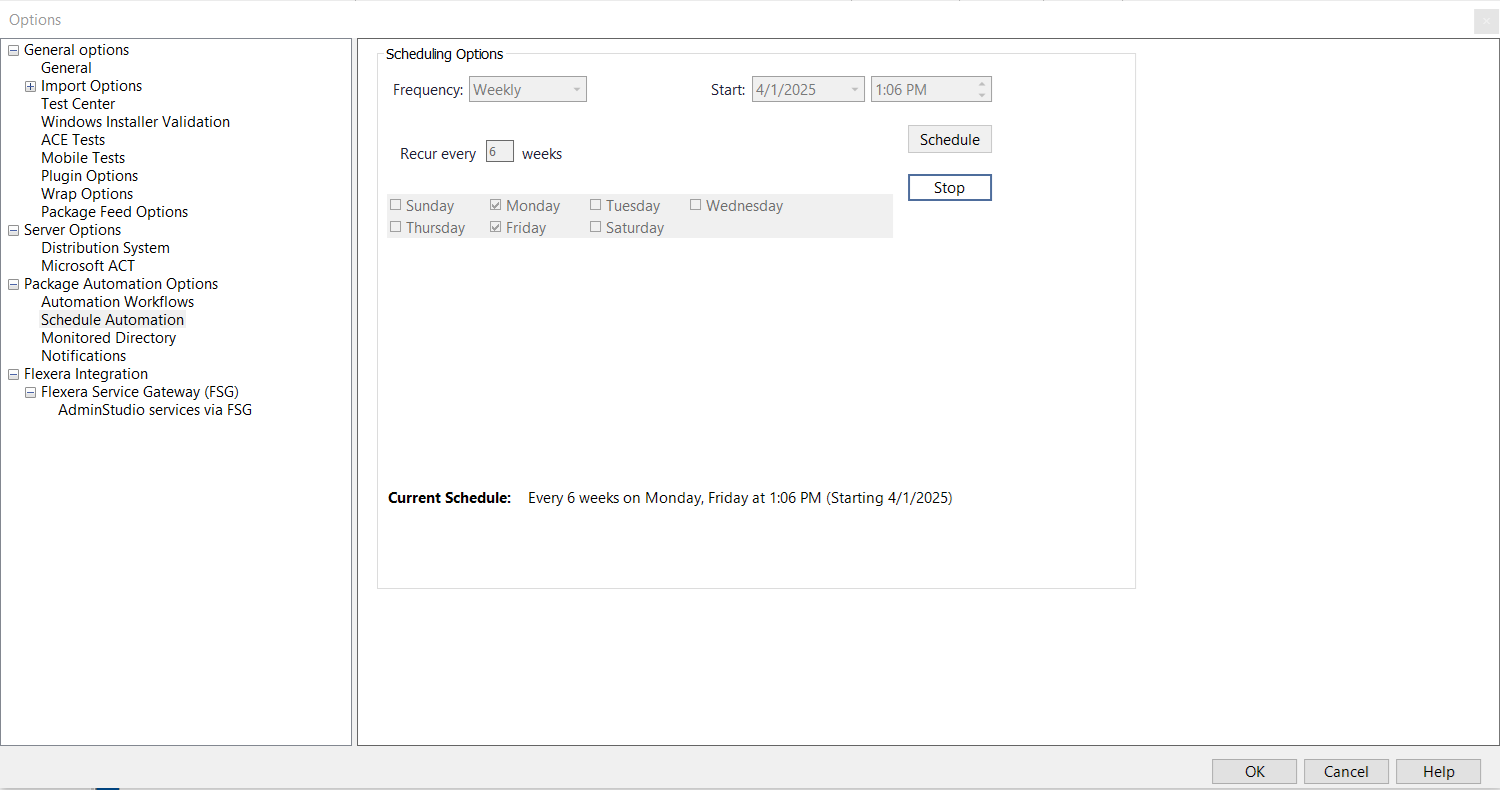 - Under Package Automation Options , select Schedule Automation . The Scheduling Options tab opens.